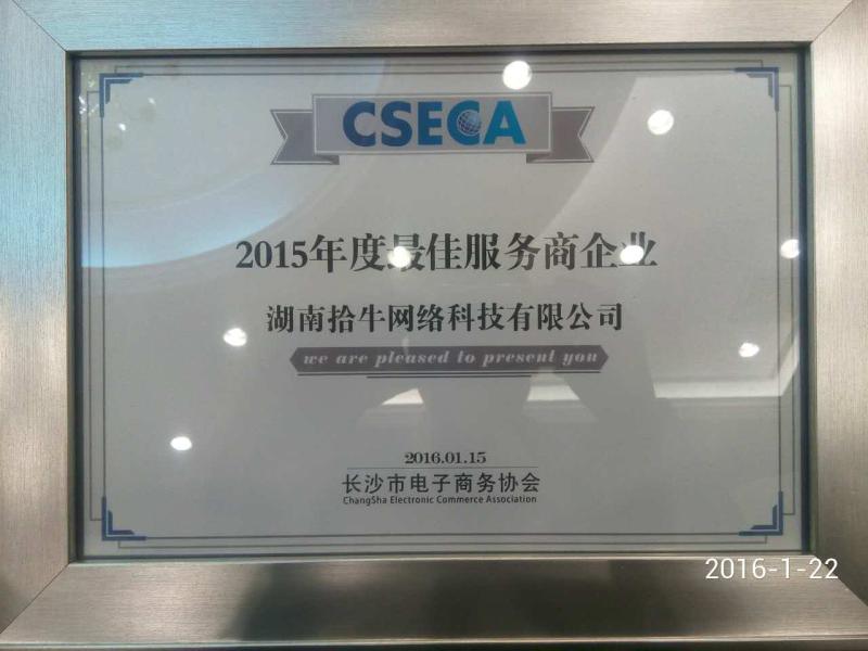 第七屆長(cháng)沙電商年會(huì )召開(kāi)!拾牛網(wǎng)絡(luò )摘得“2015最佳服務(wù)商”稱(chēng)號!