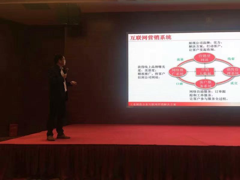 培訓內容包括詮釋互聯(lián)網(wǎng)思維、理念和方法,“互聯(lián)網(wǎng)+”政策解讀,“互聯(lián)網(wǎng)+”營(yíng)銷(xiāo)創(chuàng )新,工業(yè)電商解決方案,互聯(lián)網(wǎng)與產(chǎn)業(yè)轉型升級研討等互聯(lián)網(wǎng)實(shí)際應用與操作等。深度剖析特色產(chǎn)業(yè)工業(yè)互聯(lián)網(wǎng)應用、現實(shí)困境與難點(diǎn),通過(guò)案件分析提出中小企業(yè)互聯(lián)網(wǎng)應用解決方案,開(kāi)展互聯(lián)網(wǎng)服務(wù)企業(yè),增強中小企業(yè)交流互動(dòng),實(shí)現全方位深層次的對接與服務(wù)。本次拾牛網(wǎng)絡(luò )CEO劉憲峰培訓主題是《工業(yè)企業(yè)互聯(lián)網(wǎng)營(yíng)銷(xiāo)系統》。