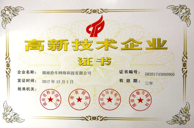 2017年12月01日國家高新技術(shù)企業(yè)認定管理工作網(wǎng)公示了湖南省2017年第二批擬認定高新技術(shù)企業(yè)名單的通知,湖南拾牛網(wǎng)絡(luò )科技有限公司作為一家為制造企業(yè)提供整體網(wǎng)絡(luò )營(yíng)銷(xiāo)解決方案的高科技產(chǎn)業(yè)的公司,榮登榜單之中!