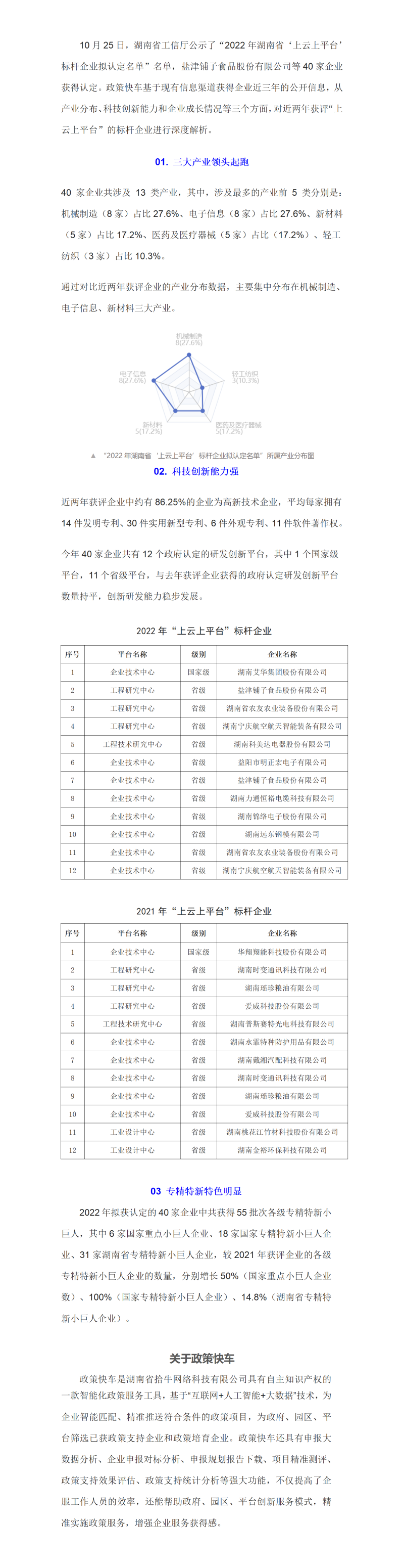 政策快車(chē)深度解析2022年湖南省“上云上平臺”標桿企業(yè)