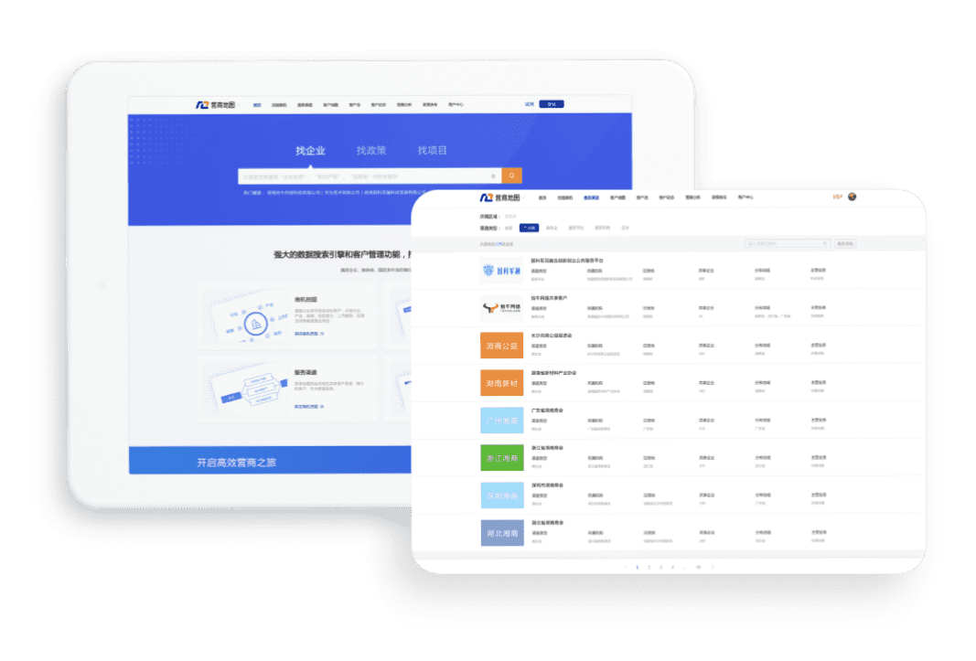 營(yíng)商地圖是一款包含大數據商機挖掘、共享客戶(hù)資源、監測客戶(hù)動(dòng)態(tài)、為客戶(hù)提供精準政策服務(wù)的大數據智能營(yíng)商工具,可為產(chǎn)業(yè)園、商協(xié)會(huì )、公共服務(wù)平臺、服務(wù)機構和企業(yè)進(jìn)行大數據應用賦能。
